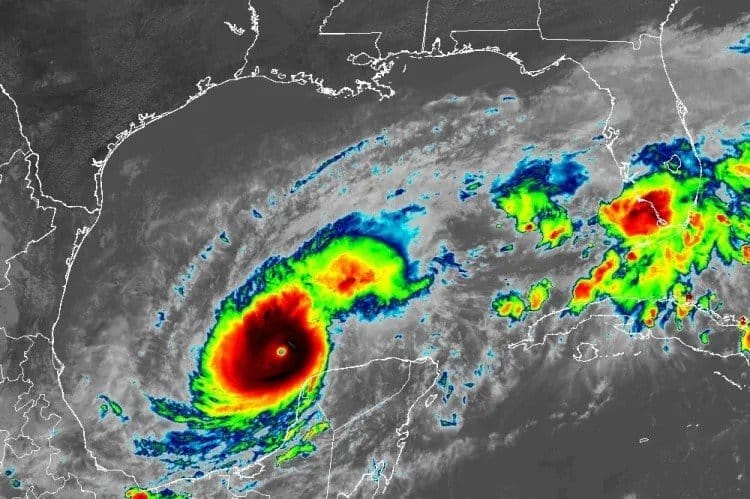 Pada pukul 10 pagi CDT hari Selasa, mata badai berada 105 km di utara-timur laut Progreso, sebuah pelabuhan Meksiko dekat ibu kota negara bagian Yucatan, Merida, dan 840 km di barat daya Tampa, bergerak ke timur dengan kecepatan sembilan mph (15 kph).