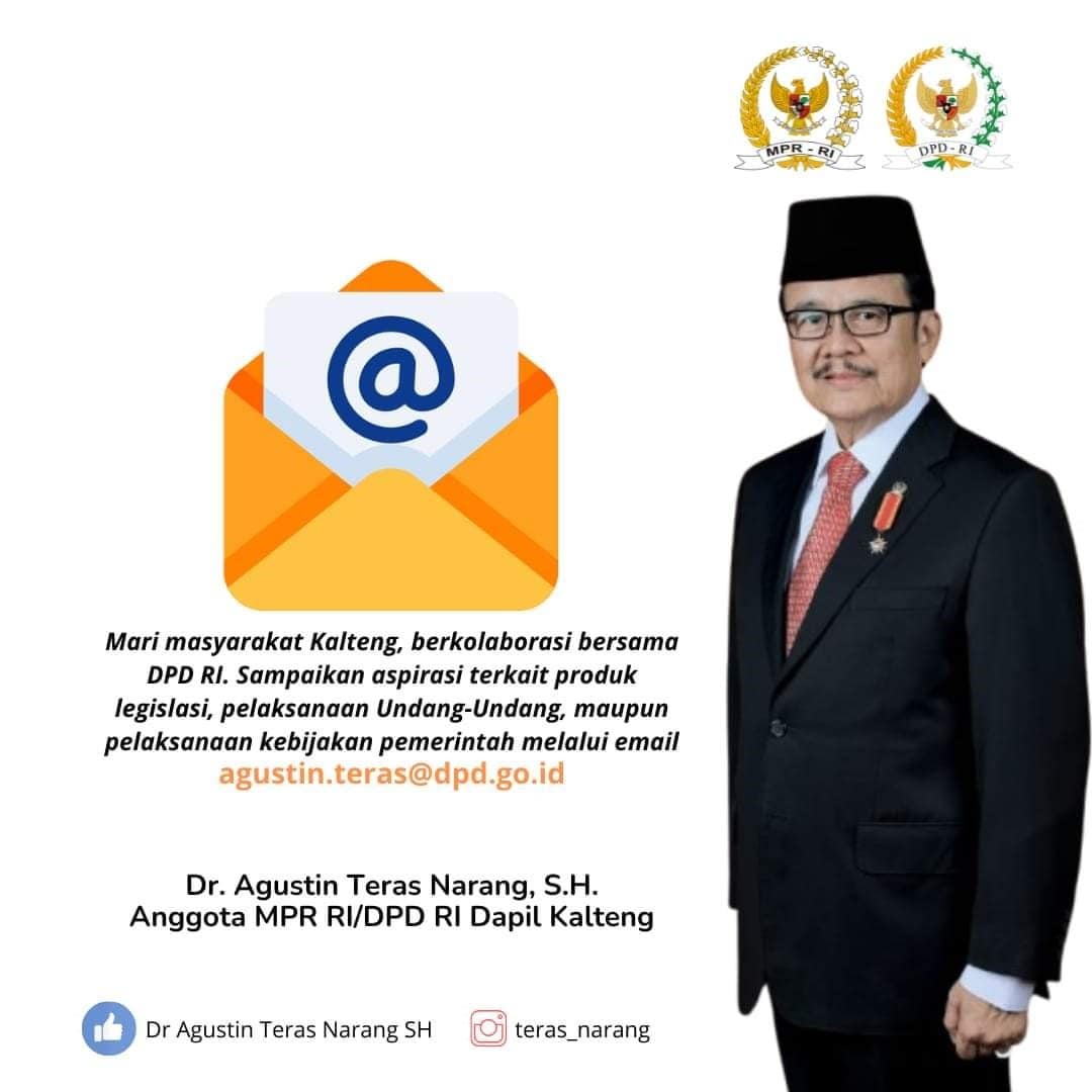 Teras Narang sangat terbuka menerima masukan dari masyarakat Kalteng. Masukan ini bisa disampaikan secara lisan atau tertulis. Bahkan, ia menyediakan email resmi untuk menampung masukan-masukan ini di: agustin.teras@dpd.go.id.