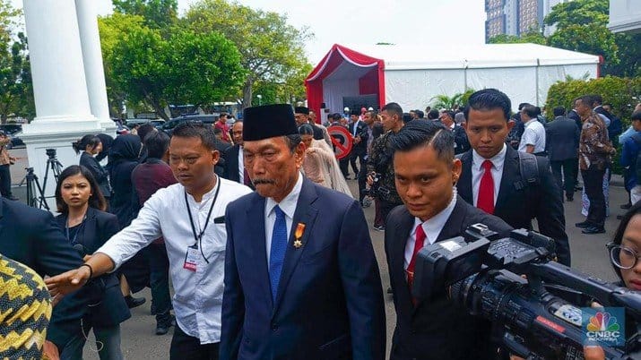 Luhut Binsar Pandjaitan, mantan Menteri Koordinator Investasi dan Kemaritiman, terlihat hadir di Istana Negara pada Senin, 21 Oktober 2024. Meskipun kehadirannya menarik perhatian banyak pihak, Luhut tidak memberikan komentar kepada media. Saat didekati wartawan, ia hanya berkata, “Saya jalan dulu ya,” dan langsung masuk ke dalam Istana tanpa memberikan penjelasan lebih lanjut.