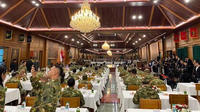Presiden Prabowo Subianto memimpin acara makan malam gala di Ruang Makan Husein, Akademi Militer (Akmil) Magelang, pada Jumat malam (25/10). Acara ini dihadiri oleh jajaran menteri dan kepala lembaga dari Kabinet Merah Putih serta para taruna Akmil. Dalam makan malam tersebut, Prabowo juga mengungkapkan rasa syukurnya atas keberadaan enam peraih Adhi Makayasa di dalam kabinetnya.