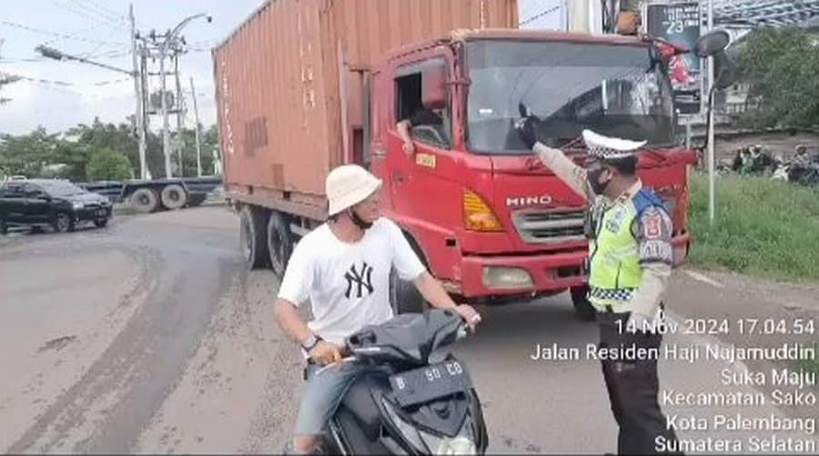 Namun, pria yang mengendarai sepeda motor dan diduga mengawal truk tersebut tidak terima ditegur oleh polisi.
